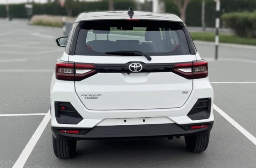 Daytime running lights and a rear fog lamp improve visibility, while ISO-FIX mounts ensure secure child seat installation. The Tire Pressure Monitoring System maintains correct air levels, and select trims include rear parking sensors and a rearview camera, making the Raize suitable for those looking to lease car in UAE for family use.