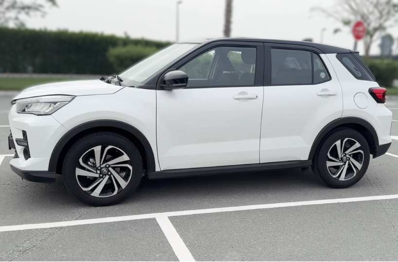 Toyota Raize is ideal for a monthly car rental Dubai, offering practicality. A multi information display keeps the driver informed, and the inside rear view mirror improves visibility. The trunk mat, tonneau cover, and leather wrapped steering wheel and shift knob add premium touch.